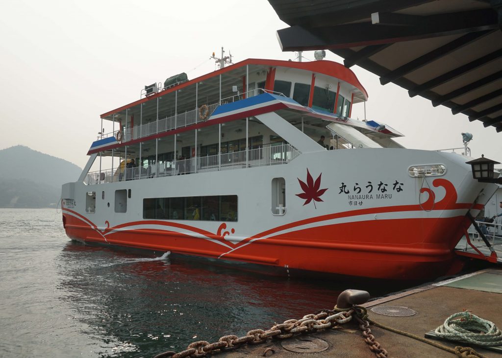 - Luego salir de la estación y tomar el Ferry(Incluido en el JR) que te dejará en la isla en 10 a 15 min.